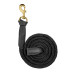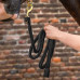 Високоякісний чомбур із елегантною фурнітурою золотого кольору та вишуканими шкіряними елементами стане стильним та практичним аксесуаром для повсякденного використання.Він відрізняється міцністю, надійністю та приємною на дотик текстурою, забезпечуючи комфорт та безпеку при веденні коня.Дизайн чомбуру ідеально поєднується з недоуздком Royal, створюючи гармонійний і благородний образ, який підкреслить увагу до деталей та високі стандарти догляду за конем.