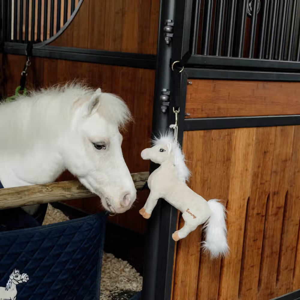Іграшка для коня Sammy допомагає запобігти нудьгу в деннику, видаючи цікавий хрумкий звук при натисканні на живіт, який привертає увагу коня.Іграшка має вільну гриву, хвіст та ноги, а також мотузку для кріплення у стійлі.Наповнена джутом, тому зберігає форму навіть за активної гри.Призначена в першу чергу для розваг коней, але завдяки привабливому дизайну сподобається і дітям.Довжина іграшки-40 см.