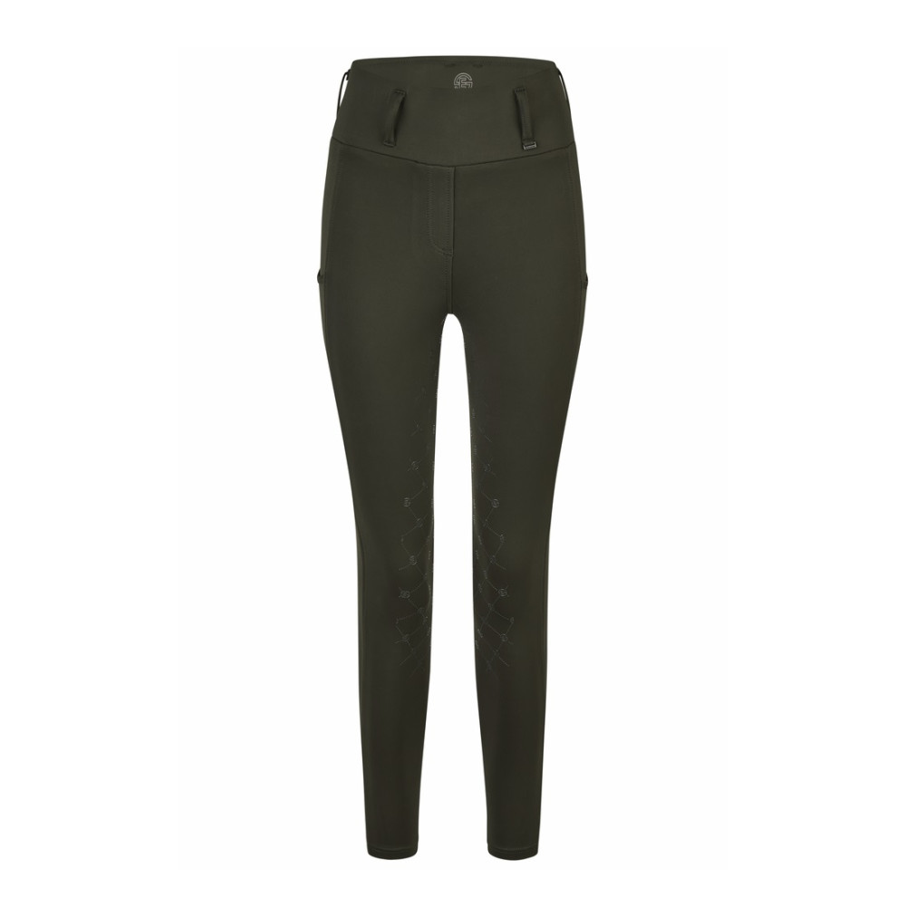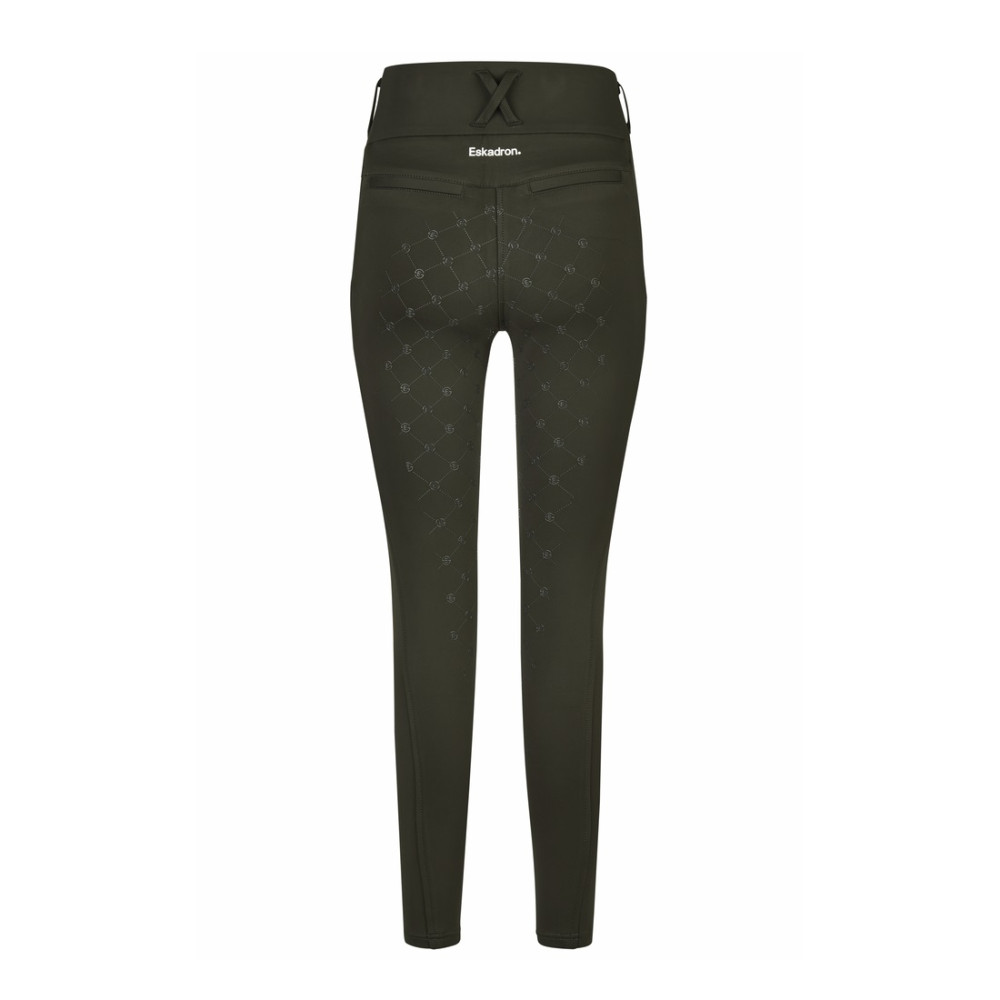 Лосини для верхової їзди виготовлені з еластичного матеріалу з 4-стороннім розтягненням, що підходить для будь-якої пори року.Оснащені декоративними швами з імітацією блискавки та зручними кишенями для мобільного телефону з обох боків.Широкий формуючий пояс із шльовками для ременя прикрашений металевою табличкою Eskadron.З обох боків розташовані фірмові принти Eskadron.Легка та зносостійка повна силіконова лея забезпечує надійну фіксацію в сідлі та комфорт під час їзди.Матеріал: 77% нейлон, 23% еластан.