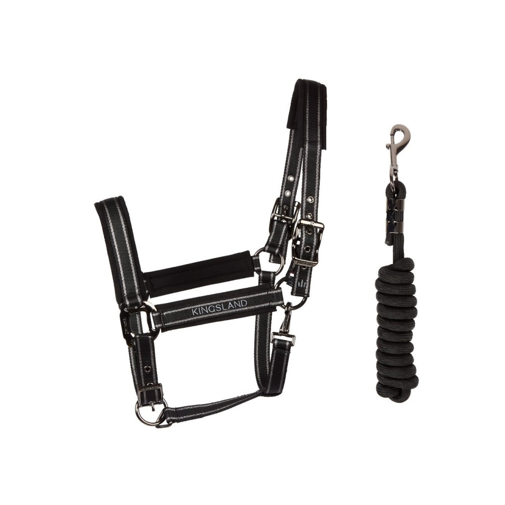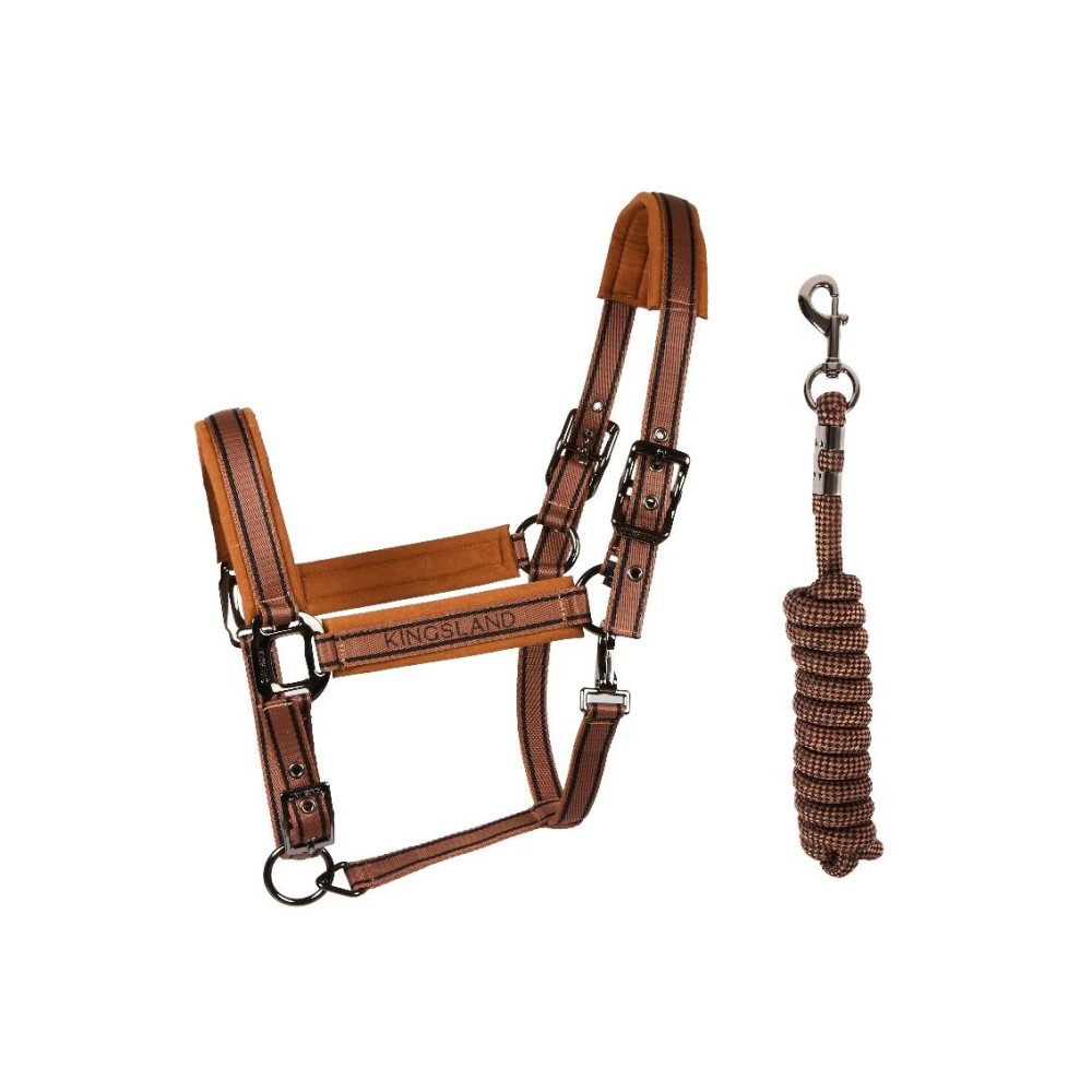 Недоуздок із чомбуром KLMona поєднує в собі стиль і комфорт, роблячи комплект ідеальним вибором для вимогливих вершників. М’яка підкладка зі штучної замші забезпечує чудове зняття тиску та запобігає натиранню, а фурнітура кольору темного металу надає виробу вишуканого й сучасного вигляду.Матеріал: 100% поліестер.