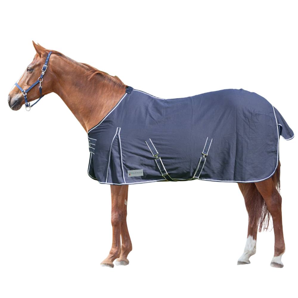Попона виглядає чудово для комфортного використання у прохолодні вечори завдяки своїм практичним деталям.Вона дихаюча та зручна, з липучками на грудях, які полегшують надягання, а плечові вставки забезпечують свободу рухів.Підкладка в області холки та ремені (підпузні та підхвістні) роблять її особливо стійкою та надійною.Бавовняний матеріал також сприяє м'якості та комфортному температурному режиму.Найбільш підходить як міжсезонна попона.Матеріал: 100% бавовна.