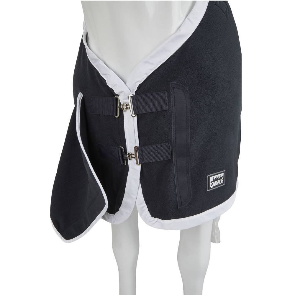 Попона виготовлена з високоякісного флісу з анти-пілінговим ефектом, який запобігає утворенню катишків і зберігає бездоганний зовнішній вигляд.Модель оснащена подвійною застібкою на грудях і знімною нагрудною накладкою для індивідуального оформлення.Контрастна глянцева окантовка та вишуканий шнур біля хвоста надають попоні благородного й стильного вигляду.Попону можна персоналізувати, що робить її чудовим вибором для змагань і тренувань.Матеріал: 100% поліестер.