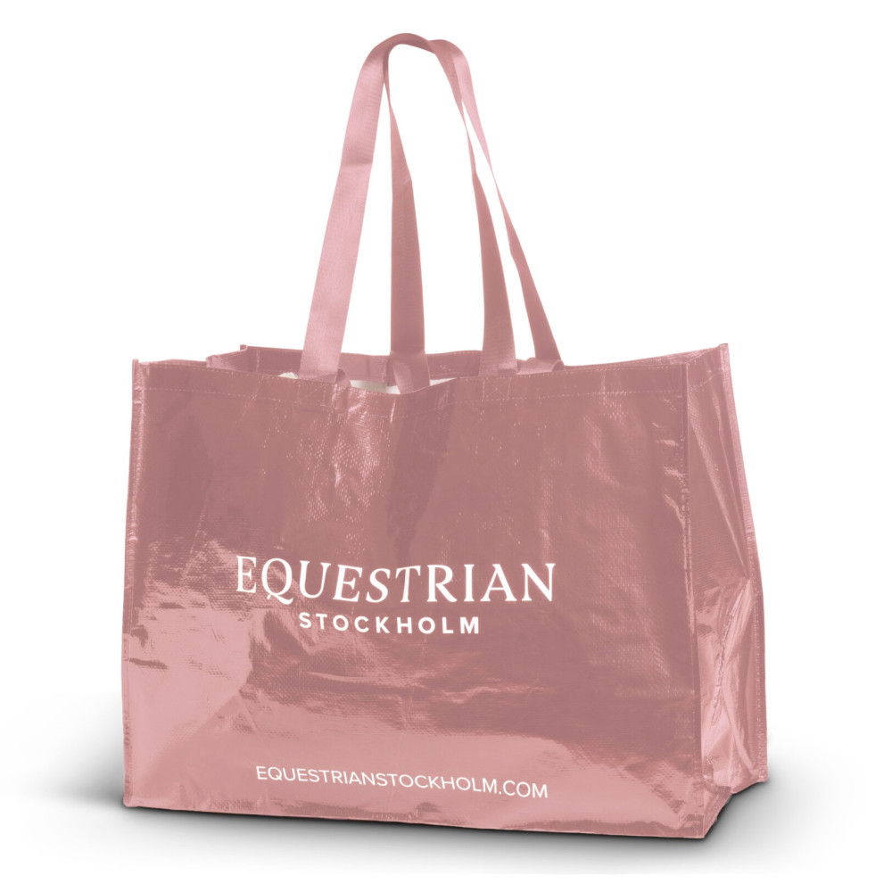 Велика сумка із міцного тканого поліестеру.У сумки симпатичні глянцеві подвійні ручки-ремішки з поліестеру.Ідеально підходить як мішок для сіна або для перенесення вальтрапів.Легко зберігати у складеному стані.Розмір: 60 см завширшки, 45 см заввишки, 30 см завглибшки.Ручки: довгий плечовий ремінь та дві короткі ручки для перенесення.Прання: тільки ручне прання в теплій воді.