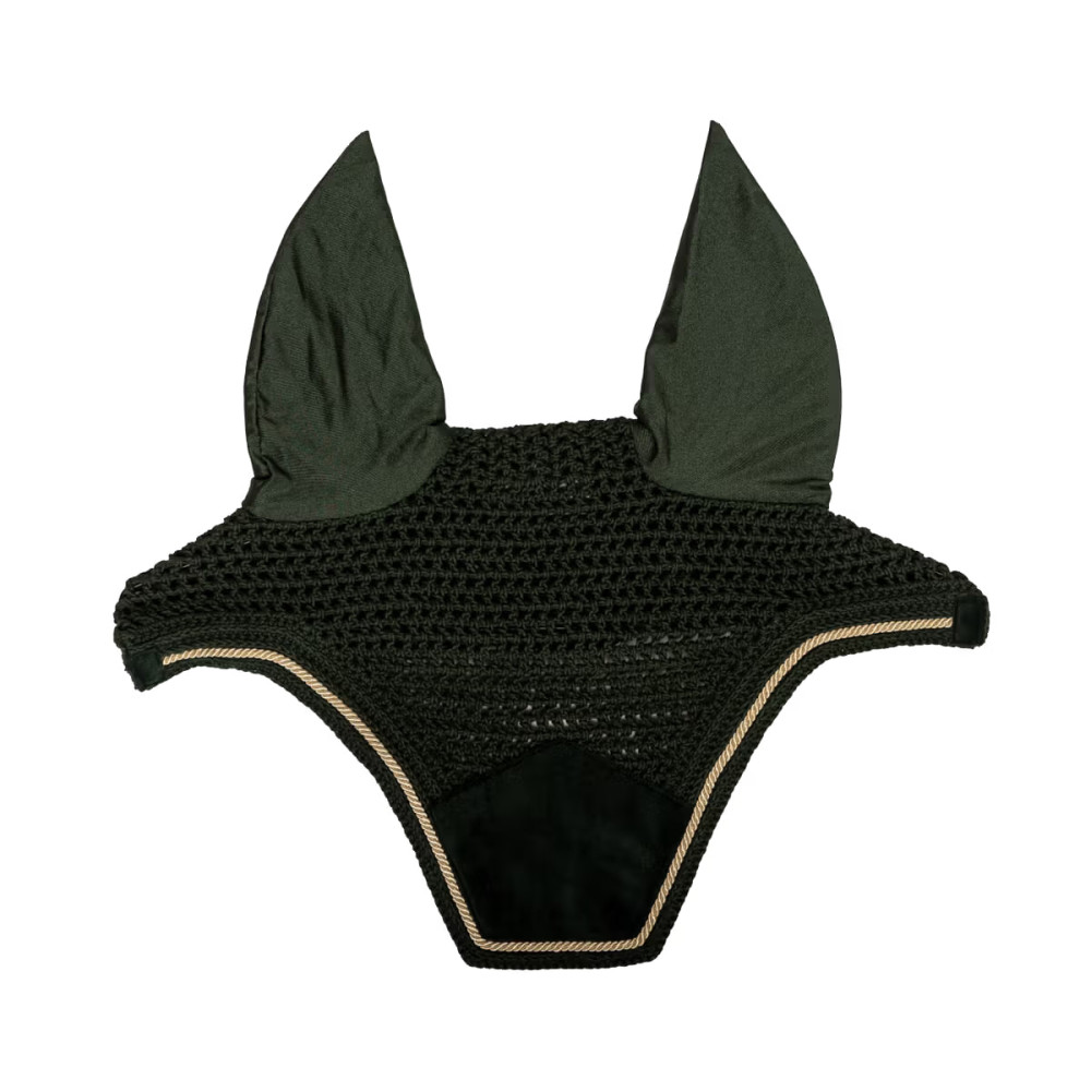 Вушка для коня Velvet Kentucky поєднують у собі американський стиль, розкішні бархатні деталі та фірмову якість. Модель виконана методом ручного в’язання, що забезпечує підвищену міцність і довговічність, а елегантне оздоблення з бархату надає вишуканого та преміального вигляду. Вушка ефективно захищають вуха коня від комах під час їзди, забезпечуючи комфорт і спокій. Матеріал у зоні вух еластичний і має вузьку посадку, завдяки чому ідеально прилягає, не створюючи тиску. Подовжена шийна частина запобігає сповзанню вушок під вуздечкою та зберігає охайний вигляд протягом усього тренування або виступу.Відсутність видимого логотипа дозволяє вершнику додати індивідуальну вишивку.