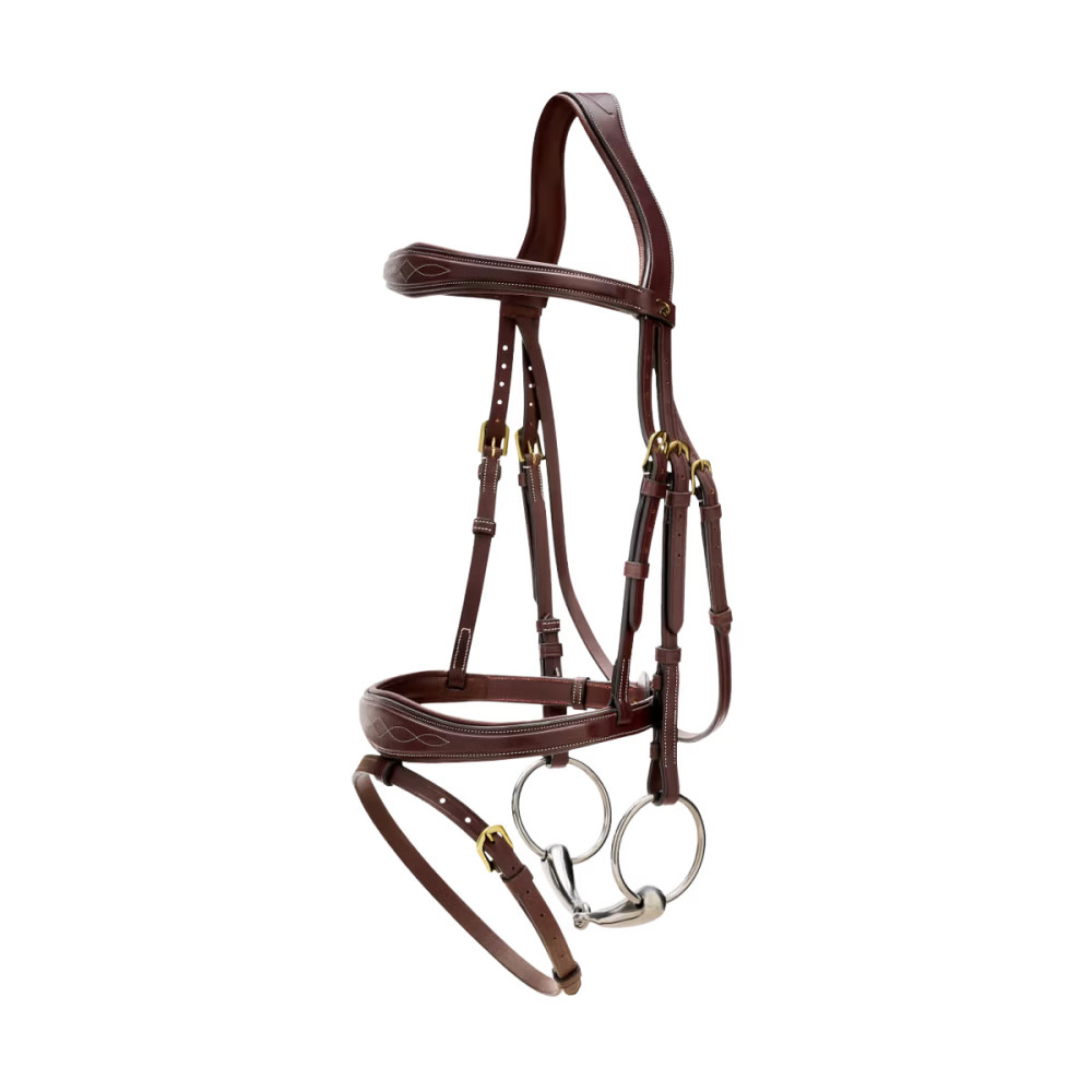 Анатомічна вуздечка сформована для максимального комфорту коня та зниження тиску на чутливі зони, а S-подібний потиличний ремінь зменшує навантаження на вуха. Розширені капсуль та налобник надають вуздечці вишуканий, преміальний зовнішній вигляд.Модель виконана з високоякісної шкіри Dy'on з європейської коров'ячої шкіри рослинного дублення, що гарантує довговічність та розкішне оздоблення.Вуздечка забезпечує рівномірний розподіл тиску на потилицю, щелепу та лицьові нерви.Вона ідеально підходить для змагань та тренувань, використовується як професіоналами, так і аматорами.Вуздечка відноситься до колекції D Collection із кремовим рядком та латунною фурнітурою.