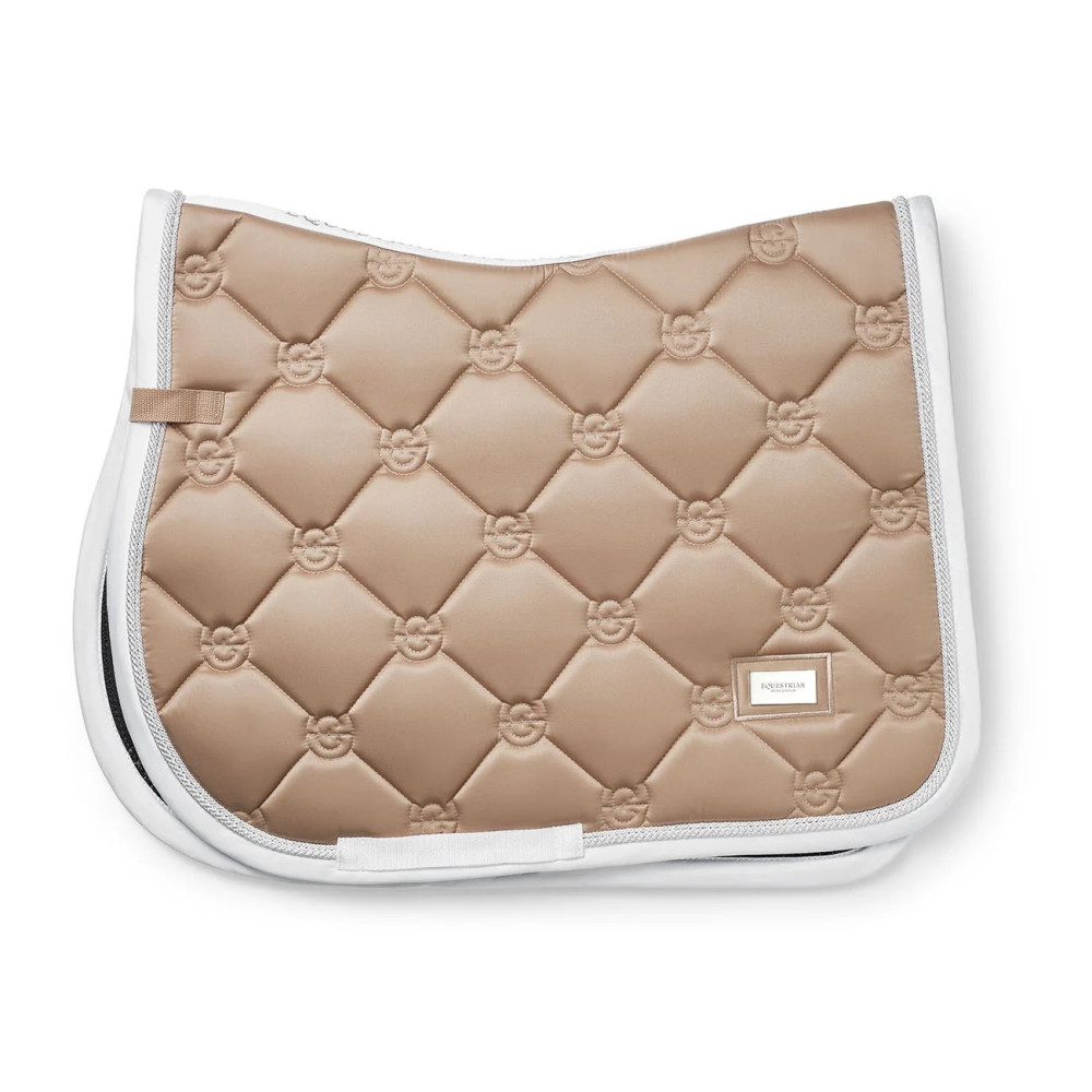 Розкішний вальтрап класичного бежевого кольору ідеально підходить як для тренувального дня, так і для турніру.Виготовлений з брудовідштовхувального матеріалу з глянцевим блиском.Дихаюча тканина вальтрапа запобігає потовиділенню і зберігає вашого коня сухого протягом усього тренування.Оригінальний малюнок стьобаної тканини з металевим логотипом Equestrian Stockholm сріблястого кольору.Характеристика:Кант: білий.Окантовка: біла з тонкою сріблястою металевою ниткою.Значок: метал сріблястого кольоруМатеріал:.Внутрішній матеріал: Super Quick Dry.Зовнішній матеріал: 100% поліестер.Прання:Прати при 30 °.Вивернути навиворіт для максимальної ефективності та мінімального зношування металевого значка.Закрити всі застібки-липучки.Не сушити в сушильній машині.Не використовувати кондиціонер для білизни або відбілювач.Не прасувати.