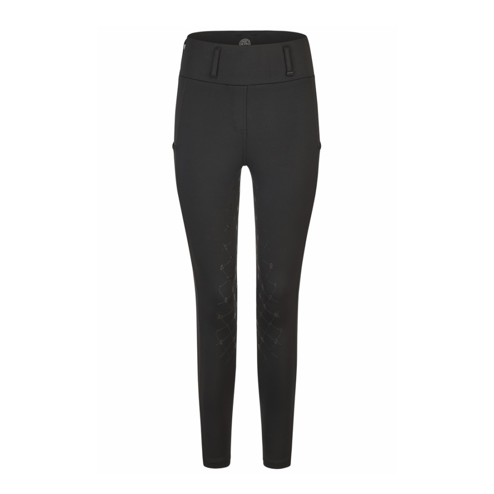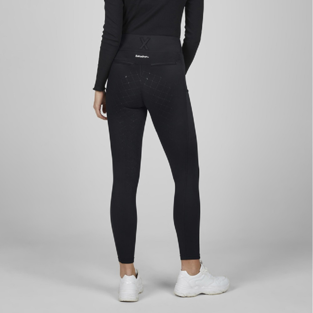 Лосины для верховой езды выполнены из нового эластичного материала с 4-сторонним растяжением, специально разработанного для летнего сезона. Он обеспечивает лёгкость, комфорт и свободу движений даже в жаркую погоду.Модель оснащена декоративными швами с имитацией молнии и практичными карманами для мобильного телефона по обеим сторонам. Широкий формирующий пояс со шлейками для ремня украшен металлической табличкой Eskadron. Фирменные принты Eskadron нанесены с обеих сторон, а лёгкая и износостойкая полная силиконовая лея обеспечивает надёжную фиксацию в седле и комфорт при езде.Материал: 77% нейлон , 23% эластан.