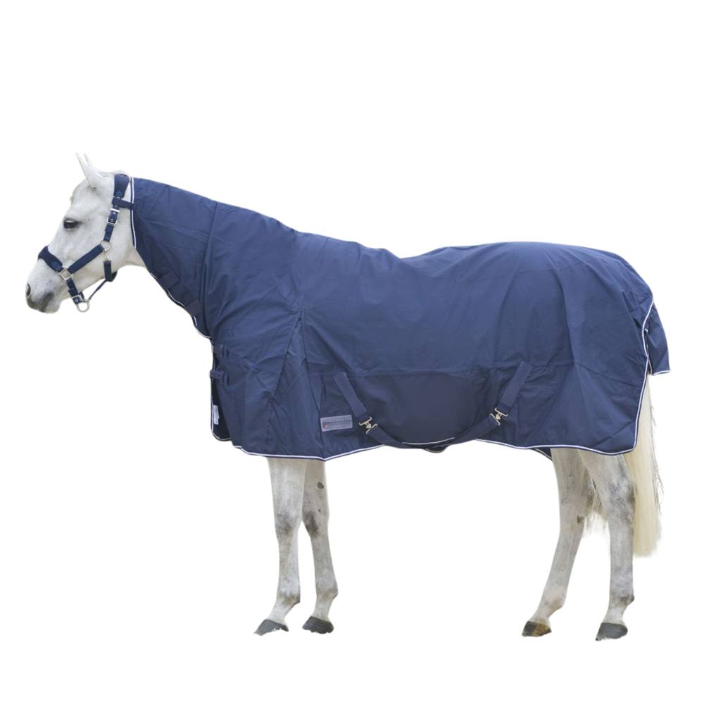 Водонепроницаемая, дышащая попона из прочного материала плотностью 600 ден. Внутри подкладка,впитывающая пот. Регулируемые застежки на капоре и груди. Подпузные ремни.Капор имеет дополнительные крепления к недоуздку.Внешний материал: 100 % полиэстер.Подкладка: 65 % полиэстер + 35 % хлопок.