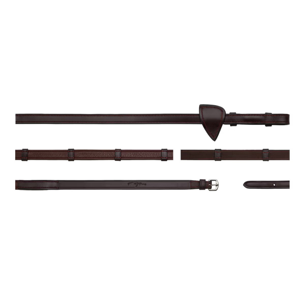 Повод для уздечки выполнен в классическом стиле и оснащен семью кожаными шлёвками со стопперами. Он совместим со всеми уздечками в том числе двойными из коллекции New English Collection.Поводья обеспечивают надёжный захват, удобство в использовании и элегантный внешний вид.