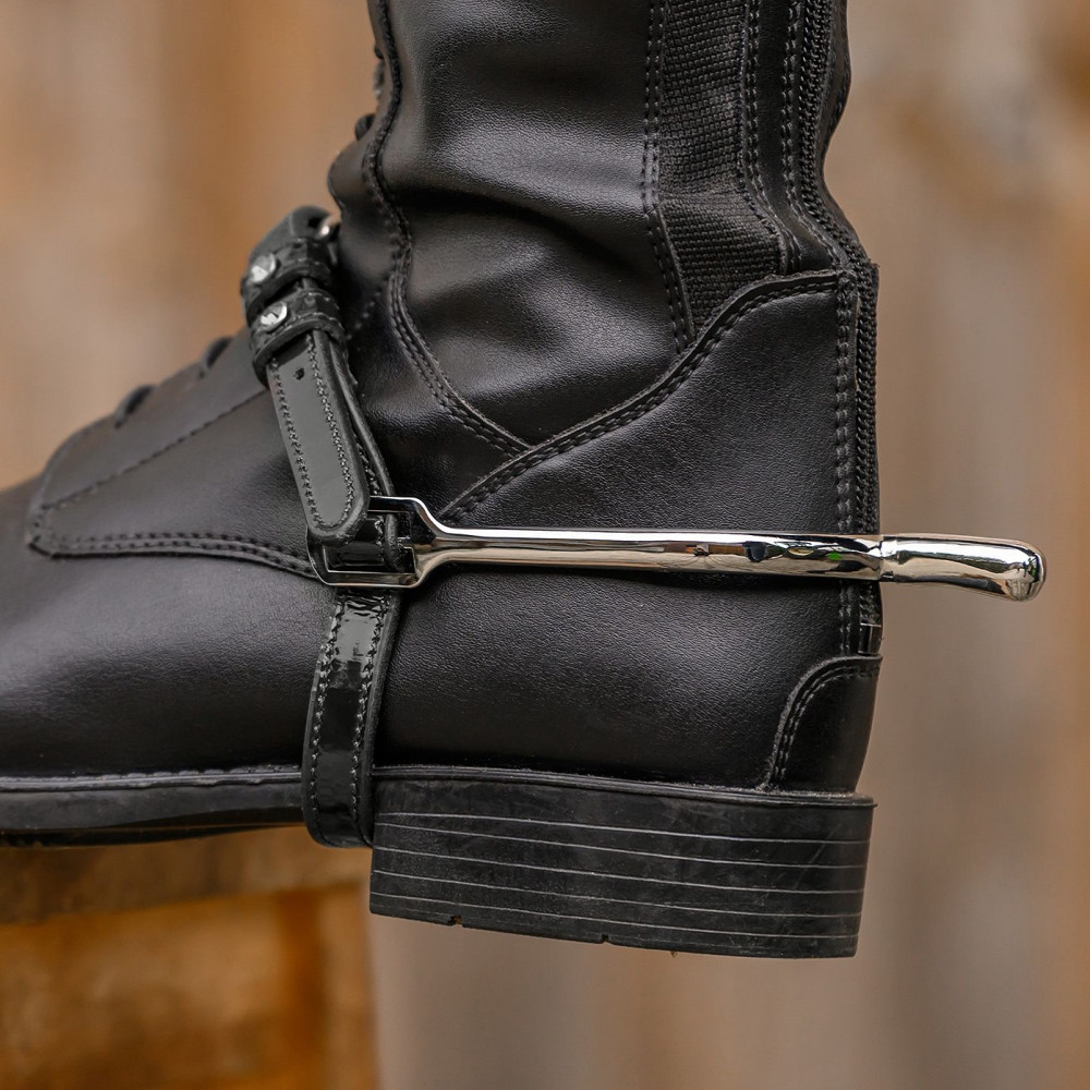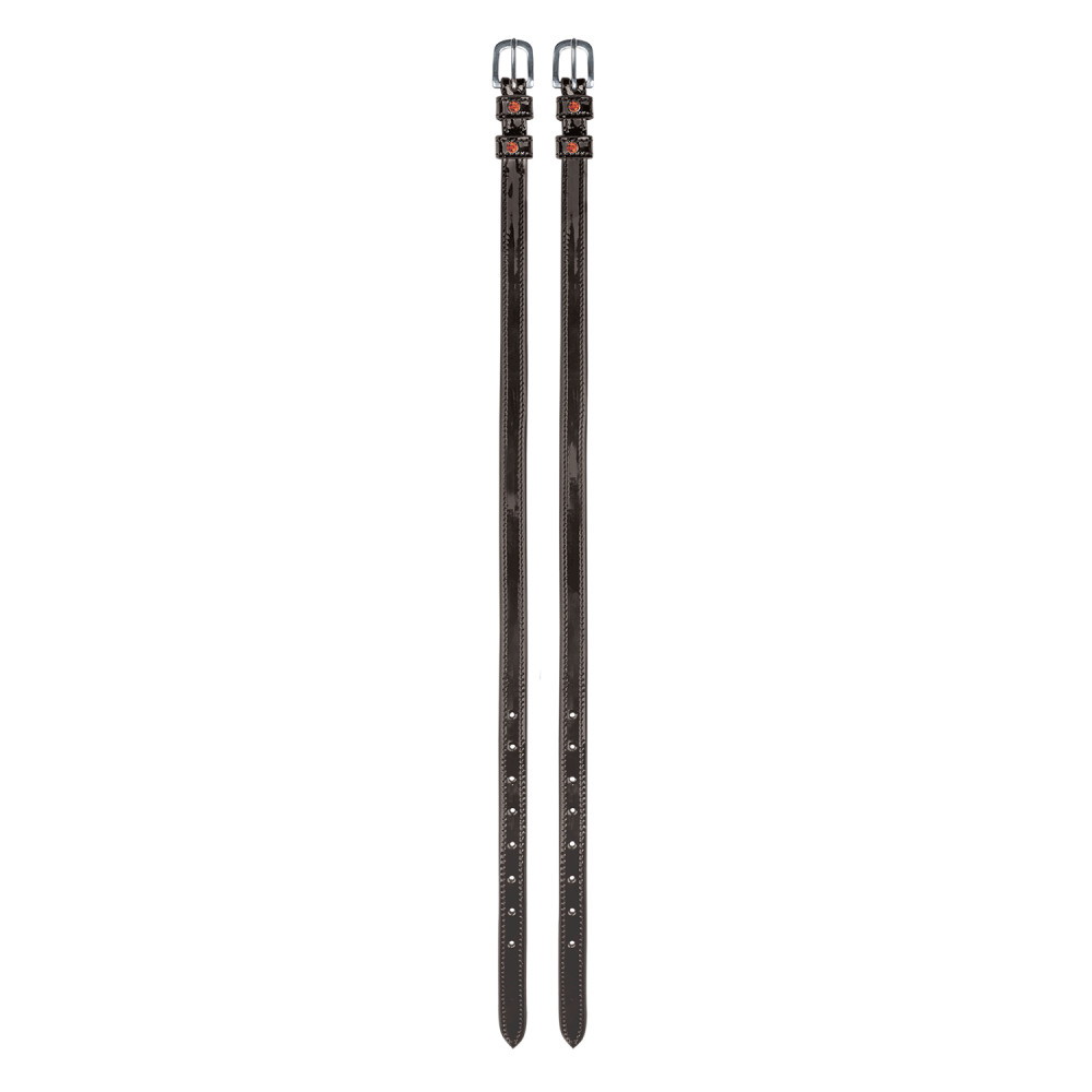 Ремешок для шпор из лакированной кожи с кристаллом на петлях. В комплекте пара.Длина: 47 см.Материал: 100% натуральная кожа.