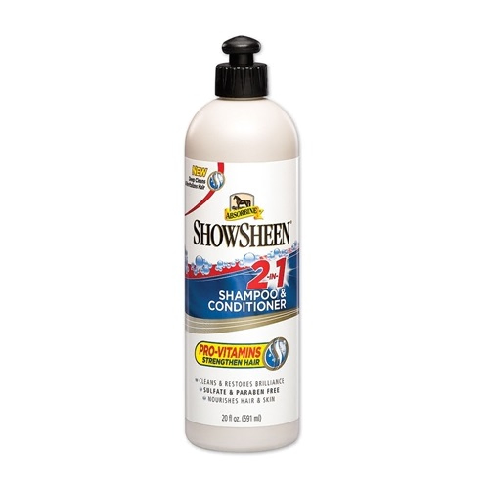 Шампунь-Кондиционер 2 в1 ShowSheen глубоко очищает и восстанавливает шерсть. Содержит сбалансированную pH формулу, которая была специально разработана для чувствительной кожи лошади. Провитамины питают кожу и шерсть, способствуя укреплению волос гривы и хвоста у лошади, и тут же устраняет необходимость в отдельном приобретении кондиционера.Шампунь-Кондиционер 2 в 1 ShowSheen не содержит сульфаты и парабены.Производство Absorbine, США