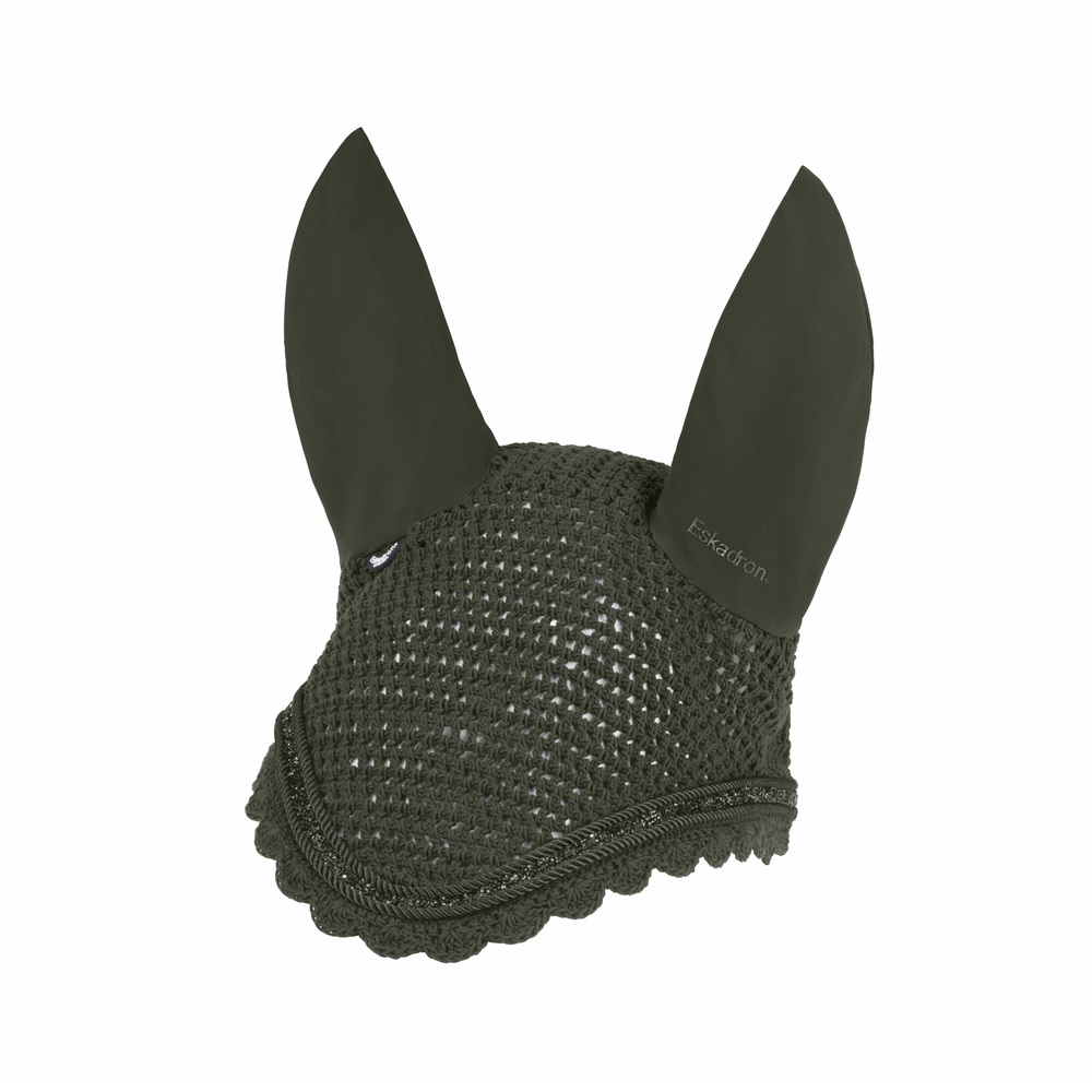 Ушки для лошади связаны из хлопковой пряжи крючком и дополнены материалом SoftShell, обеспечивающий комфорт и защиту от насекомых. Декорированы комбинацией кристалов, что придаёт изделию элегантный и изысканный вид. На левом ушке расположена надпись Eskadron, а также небольшой флажок-лейбл.Идеальный аксессуар для защиты и стиля на тренировках и соревнованиях.Материал:100% коттон.