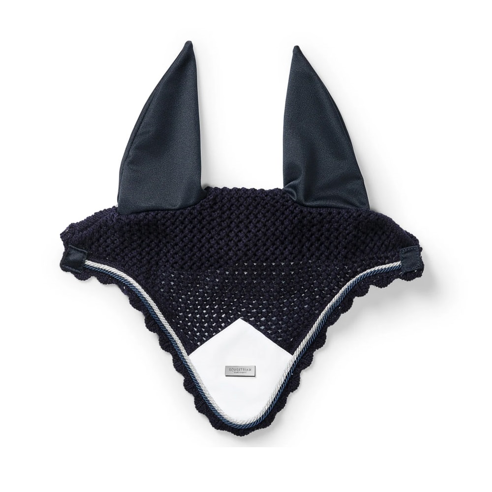 Роскошные ушки глубокого синего цвета с деталями серебристого цвета. Украшены нашивкой белого цвета спереди, контрасной окантовкой и значком с логотипом ES серебристого цвета. Ушки защищают вашу лошадь от насекомых и одновременно понижают уровень шума.Окантовка: белый /серебристый / синий.Цвет нашивки: белий.Металлический логотип: серебристый логотип ES.Материал: 100% хлопок. Материал нашивки: 100% полиэстер.Стирка: Стирать при 30 градусах, используя мешок для стирки.Не сушить в стиральной машине. Не использовать кондиционер для белья или отбеливатель.